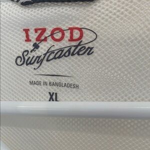 This Izod shirt combines a classic design with the comfort of crisp cotton, making it perfect for casual outings. Its clean white color and structured form offer a timeless appeal. Ideal for those seeking a blend of style and ease in their everyday wardrobe. Excellent condition