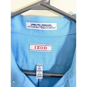 IZOD Mens Light Aqua Blue Size 17 Button Front Shirt Wrinkle Free Regular Fit Pocket Cotton Blend