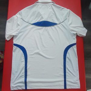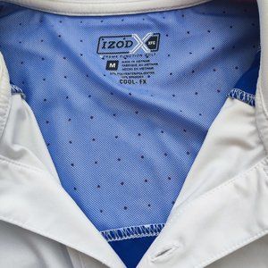 Izod XFG cool-fx white blue golf athletic shirt men's size M