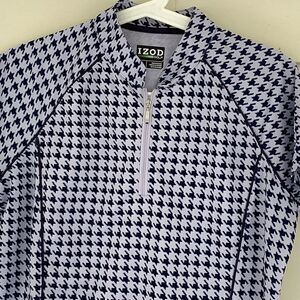 Izod houndstooth zipper front golf tennis sport shirt, medium. 0228