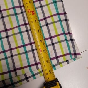 Look sharp on the golf course with these Izod Golf Shorts in a trendy checkered green, purple, and white pattern. Made with a blend of polyester and spandex, these shorts offer both comfort and flexibility while playing. The flat front and non-slip waistband ensure a sleek fit, while the quick-dry and wrinkle-resistant features make for easy maintenance.