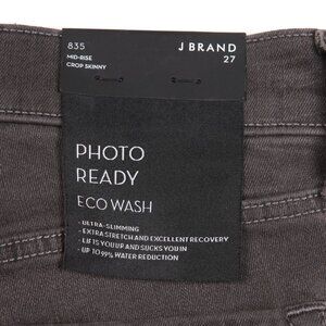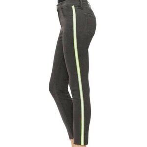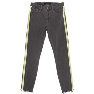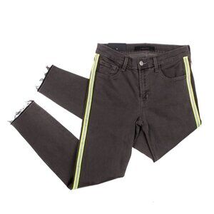 J BRAND 835 Crop Raw Hem Skinny Jeans Mid-Rise Black Grey Reflective Stripe 27