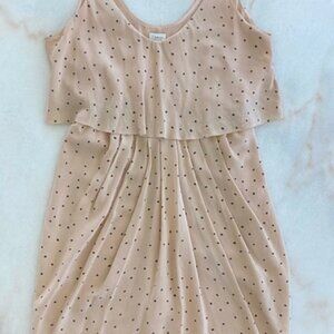 Elegant and feminine silk dress from J. Babaton in a soft blush nude with dainty black polka dots. Crafted from 100% silk, it drapes beautifully and is perfect for summer events, parties, or layering with a blazer for an elevated office look.