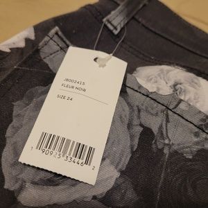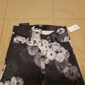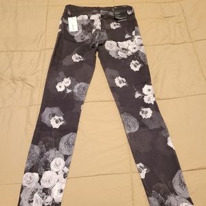 Photographic floral imagery lends these five-pocket skinnies with a darkly romantic sensibility.