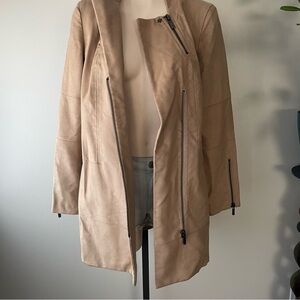 J Brand Asymmetrical Zippered Coat Long Jacket Tan Women’s Size 6 Small