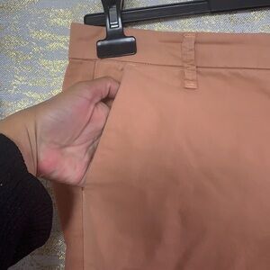 - Beautiful light orange Brown 100% cotton,tiger eye,flat front,tuxedo stripes,4 style pockets with belt loops and zipper closure,light weighted perfect for casual,business casual wear