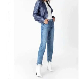 J Brand Blue Jules High Rise Straight Jeans In Sympathy Destruct size 28