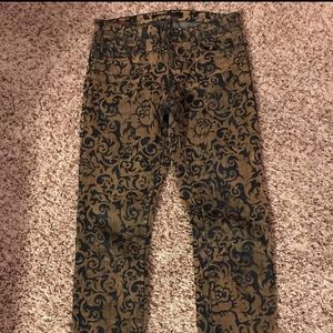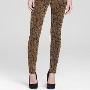 EUC J Brand “Brocade” dark denim and gold embossed skinny jeans in women’s size 25.