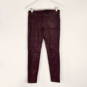 J Brand Burgundy Coated Denim Super Skinny Jeans