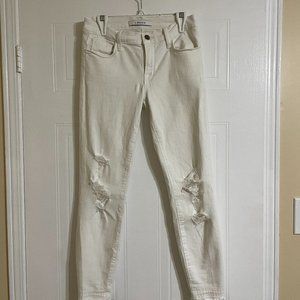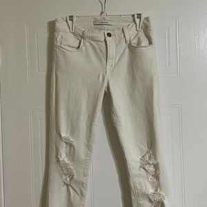 J Brand Low Rise Cropped White Distressed Skinny Jeans