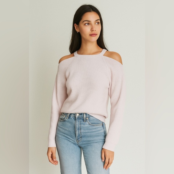 J Brand Mackenzie Cashmere Cold-Shoulder Sweater Light Pink Size M