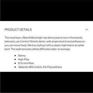 J Brand Maria High Rise High Waisted Skinny Stretchy Jeans in Heart Size 30