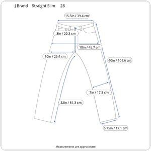 J Brand Mid Rise Slim Straight Leg Dark Wash Denim Jeans Whiskering 28