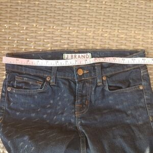 EUC J Brand pencil leg jeans in a size 25. Low rise dark wash. Sorry for the funny light shadows in measurement pics!