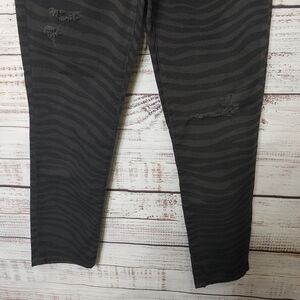 Grey and black animal print cropped jeans in a high rise crop cigarette silhouette. Factory distressing. A little stretch. 98% cotton, 2% Elastane. Brand new with tags.