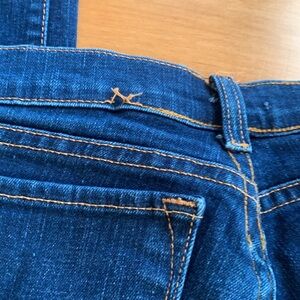 8.5” rise 15 1/4” flat waist 33” inseam 6” cuff Gently used, some loose stitching on back of waist.