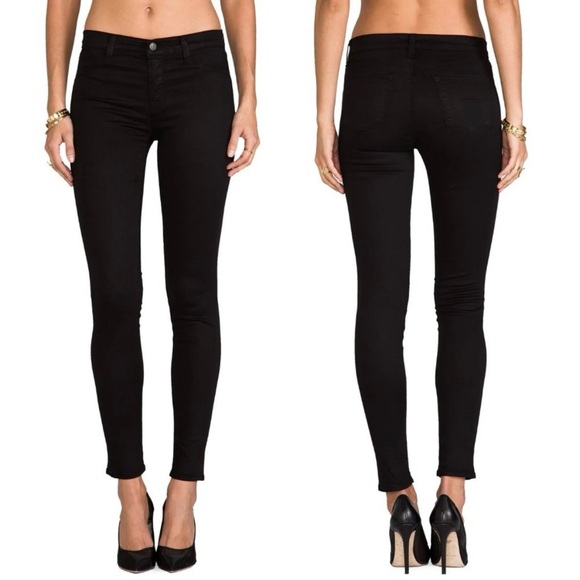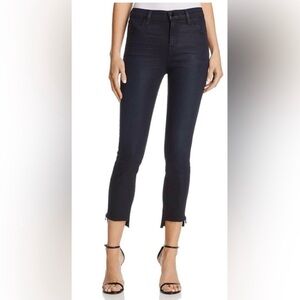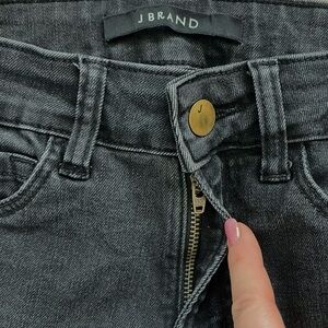 These J Brand mid-rise skinny cropped jeans in a washed black are a closet staple. An edgy take on the classic skinnies with a stepped hem from a brand you know and love. These babies are in very good, pre-loved condition. The model photos are included to illustrate fit only.