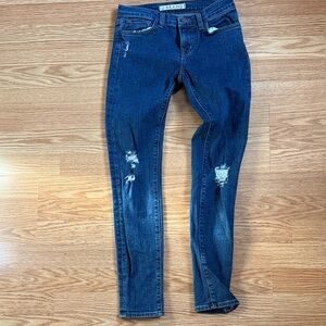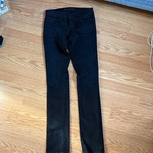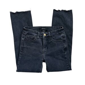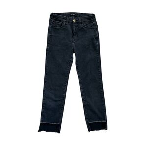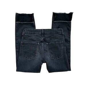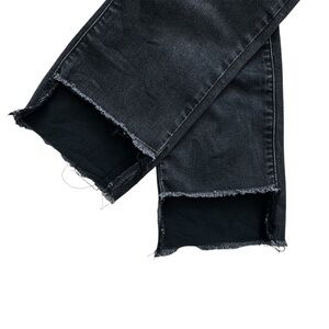 J Brand Washed Black Cropped Skinny Jeans Raw Frayed Ankle Chew Hem Size 25