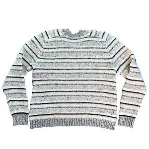 J Brand Alpaca blend white cream charcoal grey striped slightly cropped long sleeve textured fuzzy cozy warm crew neck sweater. Excellent used condition