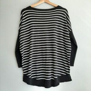 J. CREW 100% Cotton Relaxed Scoop Neck Stripe Top Ribbed Sleeve Sz M