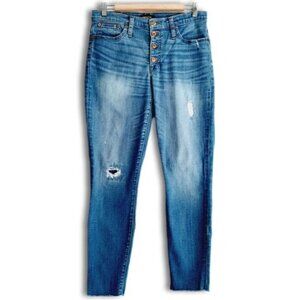 J. CREW | 9" High-Rise Toothpick Skinny Distressed Blue Jeans Sz 30 Flawed
