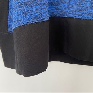 This top is used but in excellent condition. The blue fabric is a stretchy knit fabric and the black is a ‘blousy’ polyester.