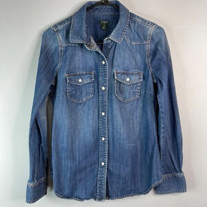 Women’s blue Medium wash denim J. Crew Factory Pearl Snap Western Shirt.