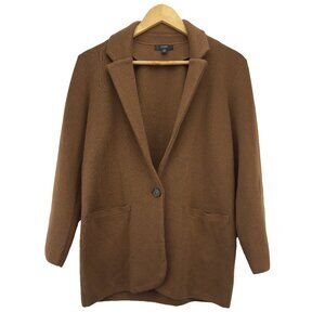 J. CREW Cecile Relaxed Fit Cotton Merino Knit One-Button Brown Tan Sweater Blazer XS