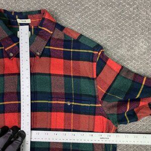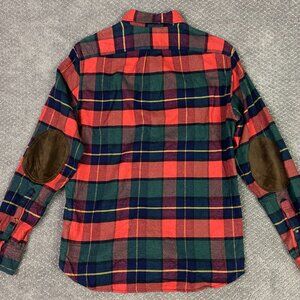 J. CREW Flannel Shirt Men's Medium Slim Red Plaid Elbow Patch Button Down