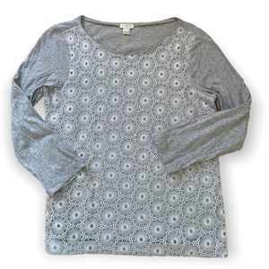 J. CREW Floral Metallic Lace Overlay T-Shirt
