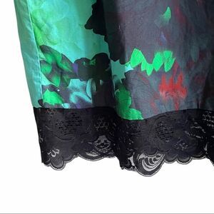 J. CREW Green Sleeveless Cotton Dress With Floral Print And Lace Bottom Midi Knee Length
