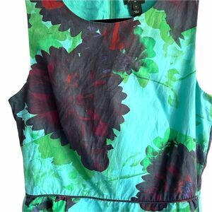 J. CREW Green Blue Print Sleeveless Cotton Dress Floral Lace Midi Knee Length 2