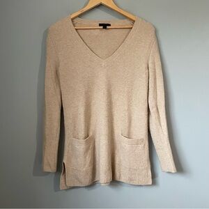 J. CREW HEATHER V NECK Tunic wool blend sweater XXS camel coloured