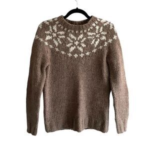 J. CREW Handknit Wool Alpaca Nordic Fair Isle Chunky Knit Sweater Tan M