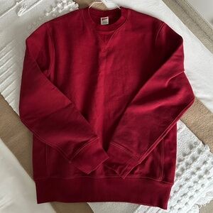 Quality cotton men’s sweatshirt by J Crew. In a deep, classic red that looks so awesome with denim. Solid weave, perfectly tailored, in almost new condition with no signs of wear or pilling. Fits a true medium. Comes from a smoke free, pet free home.