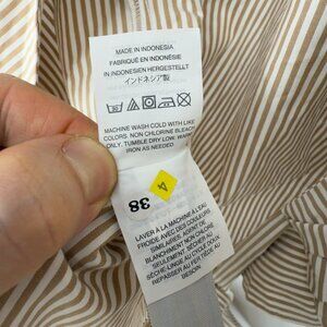 J. CREW NWOT Tie Waist Wrap Mandarin Collar White & Moka Brown Striped Blouse S