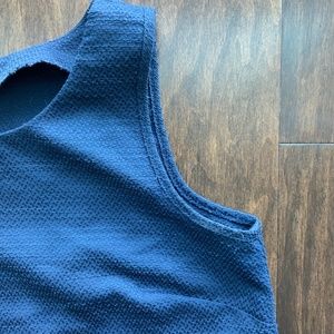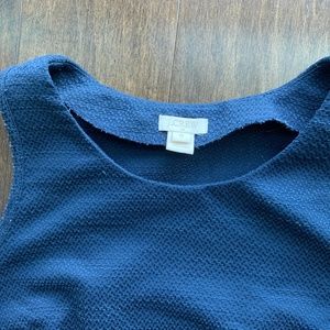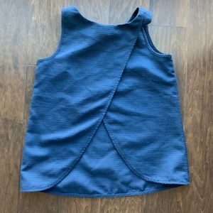 Cute navy blue sleeveless blouse with round neck from J CREW. Has open back detail. Fabric is on the thicker side.