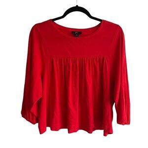 J. CREW Oversized Cropped Popover Blouse Red XS