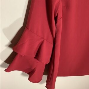 J Crew Two Tier Bell Sleeves Blouse. Dressy Style. NWT. Red wine Colour. Size 10 Tall