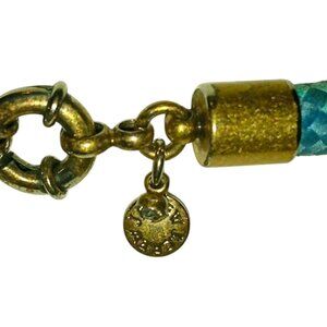 J. CREW Signed Vintage Chunky Blue Orange Rhinestone Floral Necklace Gold Tone