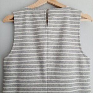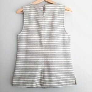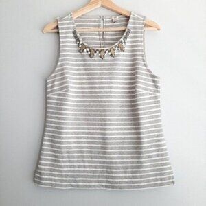 J. CREW / Striped Jeweled Neckline Tank Top Gray & White Sleeveless Sz S