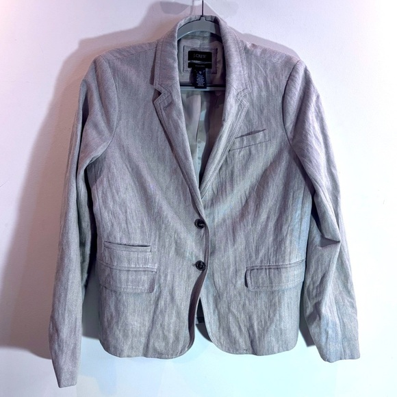 J CREW Sz 12 Blazer Schoolboy Pockets Lined Crinkled Fabric Shoulder Pads. Chic yet casual. Dress up or down. Academia. Boogie beige. Capsule wardrobe. Elevated classic.