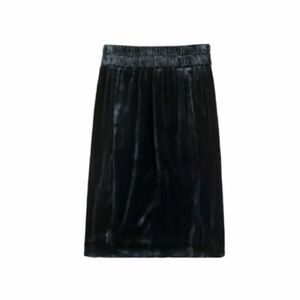 J. CREW Velvet Knee Length Midi Pencil Skirt With Pockets Black