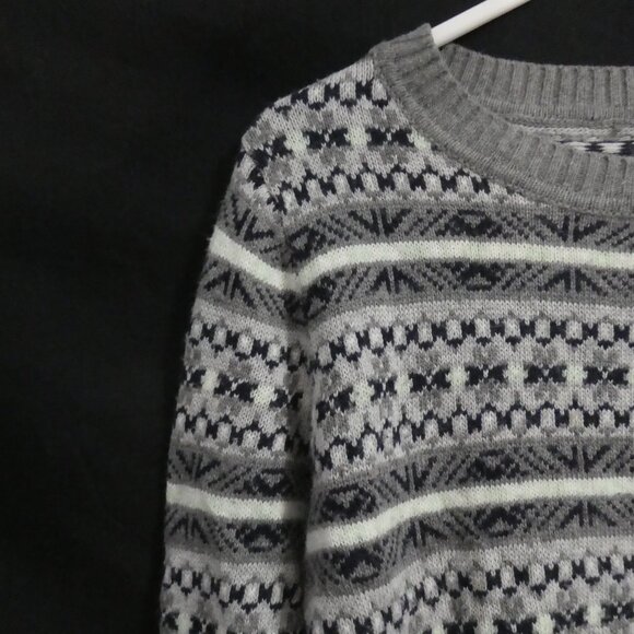 Elevate your winter wardrobe with this cozy sweater featuring an intricate geometric pattern