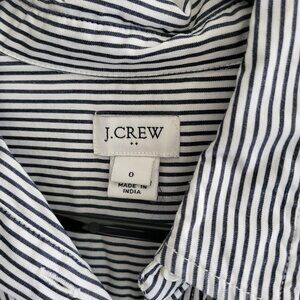 J Crew 0 Navy White Stripe Maribou Mixy Long Sleeve Tie Shirtdress