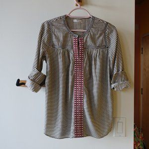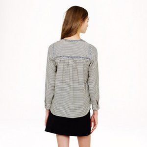 J Crew #08244 Embroidered Peasant Stripe popover top Black Red Blouse 0 XS