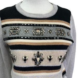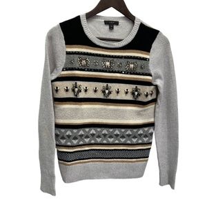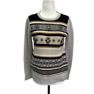 J. Crew 100% Wool Grey Long Sleeve Crew Neck Jewelled Fair Isle Sweater