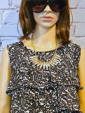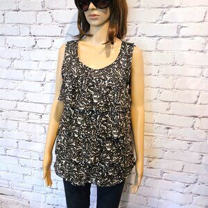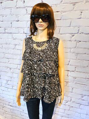 J. Crew, 100% silk black and white sleeveless tiered ruffle blouse