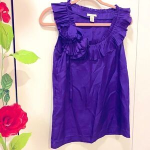 🌷J Crew🌷 100% Silk Sleeveless Top With Ruffle Flower Bow Accent