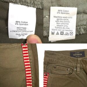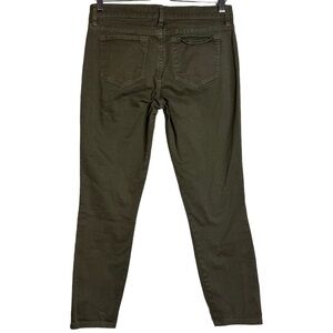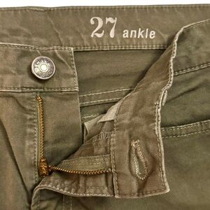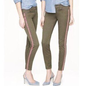 J. Crew Ankle Jeans Olive Cropped Vertical Contrasting Red and White Stripes 27